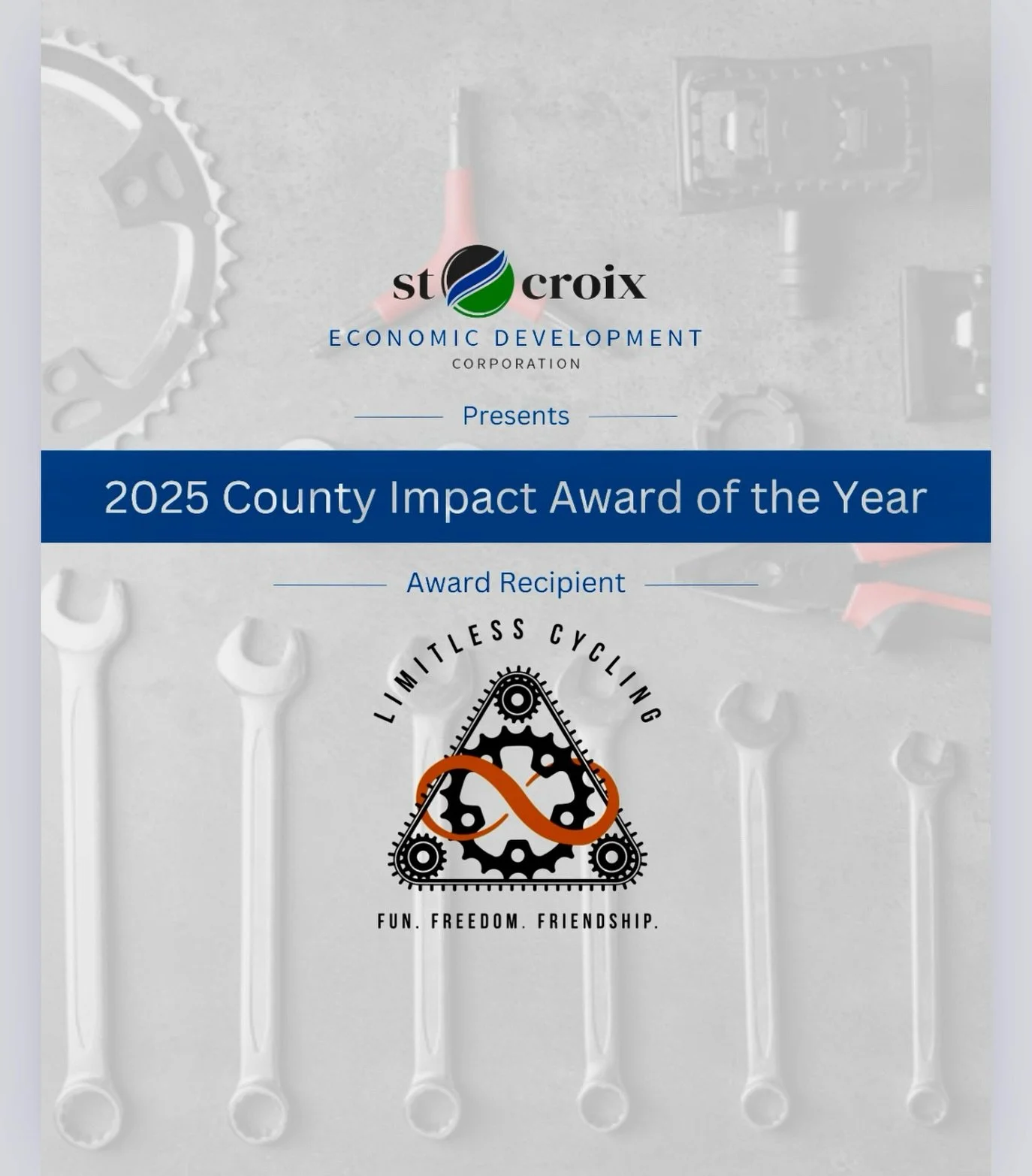 Limitless Cycling has been named the 2025 St. Croix EDC County Impact of the Year!